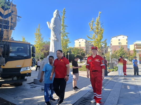10.6日上午,上富办事处志愿者协助举行唐朝著名诗人刘慎虚雕像广场安放仪式活动