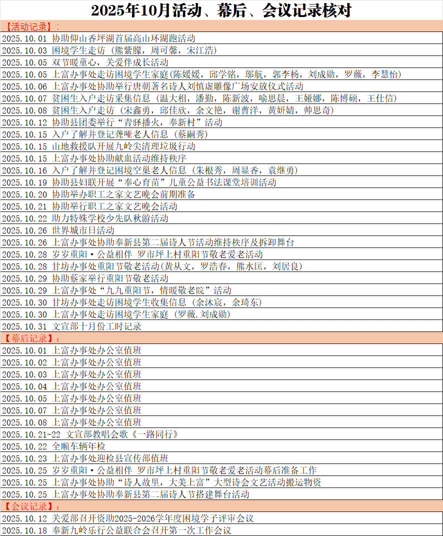 请各机构及团队负责人认真核对2025年10月志愿服务工时记录及相关