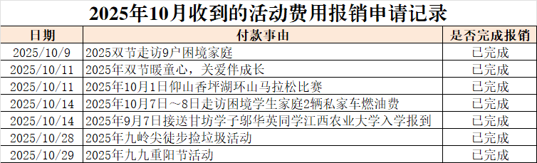 关于核对2025年10月志愿服务工时及活动费用报销的说明